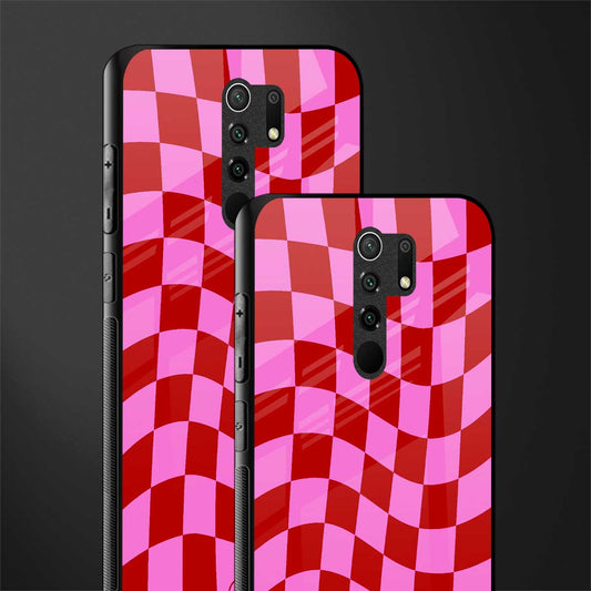 Red Pink Trippy Check Pattern Glass Case for Poco M2
