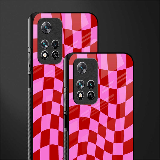 Red Pink Trippy Check Pattern Glass Case for POCO M4 Pro 5G