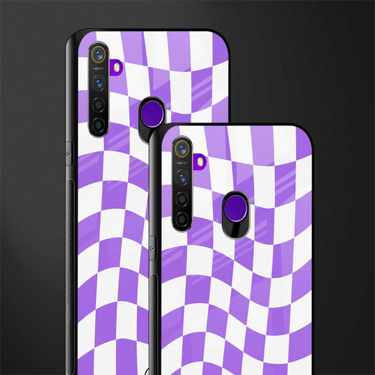 Purple White Trippy Check Pattern Phone Case for Realme 5 | Glass Case