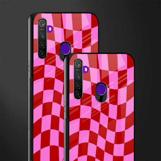 Red Pink Trippy Check Pattern Phone Case for Realme 5 | Glass Case