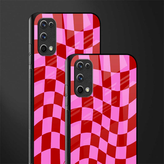 Red Pink Trippy Check Pattern Glass Case for Realme 7 Pro