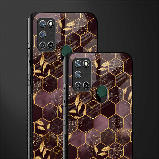 Black Maroon Tile Marble Phone Case for Realme 7i | Glass Case