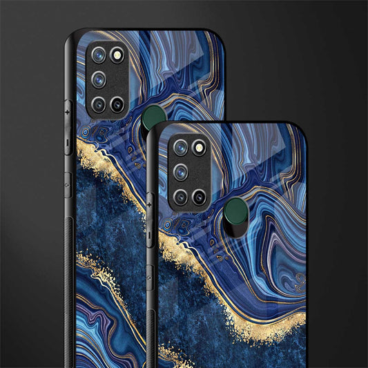 Blue Gold Liquid Marble Phone Case for Realme 7i | Glass Case