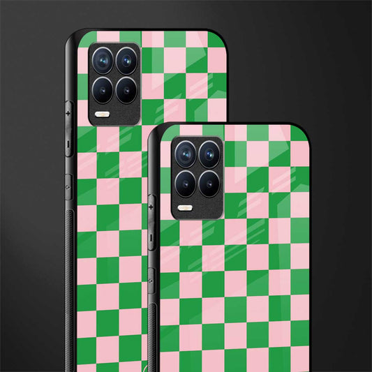 Pink & Green Check Pattern Phone Case for Realme 8 Pro | Glass Case