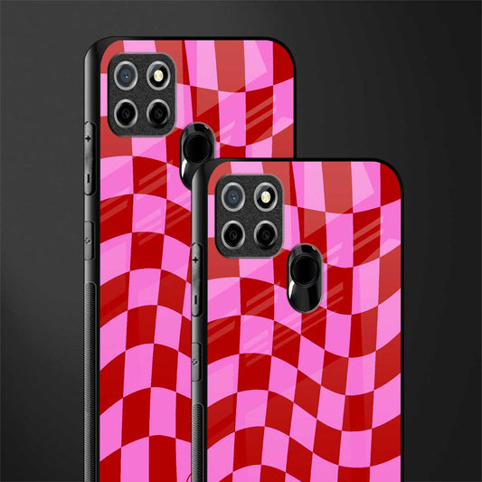 Red Pink Trippy Check Pattern Glass Case for Realme C25 / Realme C25s