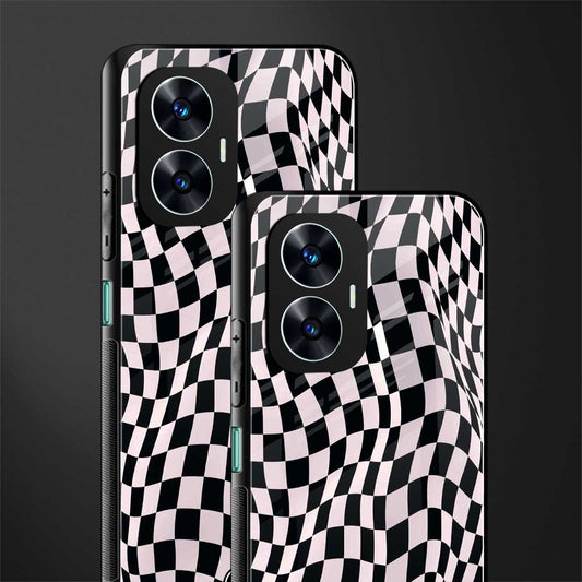 Trippy B&W Check Pattern Phone Case for Realme C55 | Glass Case