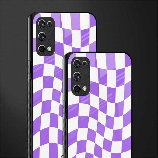 Purple White Trippy Check Pattern Glass Case for Realme X7 Pro