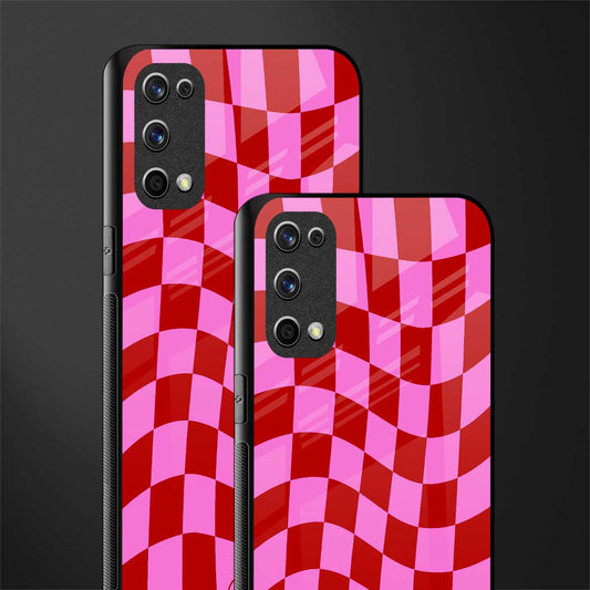 Red Pink Trippy Check Pattern Glass Case for Realme X7 Pro