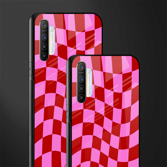 Red Pink Trippy Check Pattern Glass Case for Realme XT