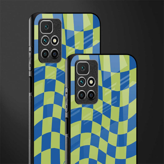 Green Blue Trippy Check Pattern Phone Case for Redmi 10 Prime | Glass Case