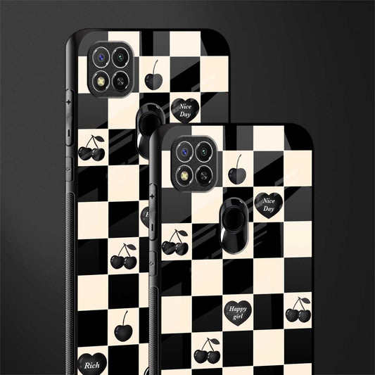 Black Cherries Check Pattern Phone Case for Redmi 9C | Glass Case