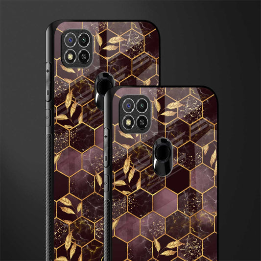 Black Maroon Tile Marble Phone Case for Redmi 9C | Glass Case