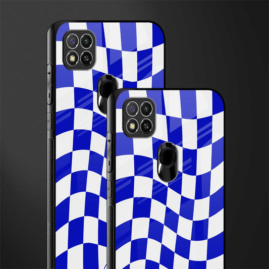 Blue White Trippy Check Pattern Phone Case for Redmi 9C | Glass Case