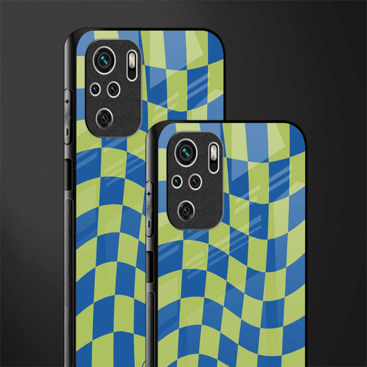 Green Blue Trippy Check Pattern Phone Case for Redmi Note 10S | Glass Case