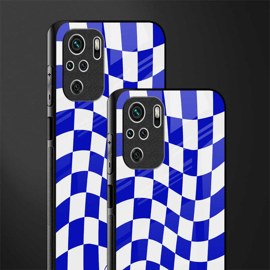 Blue White Trippy Check Pattern Phone Case for Redmi Note 10S | Glass Case