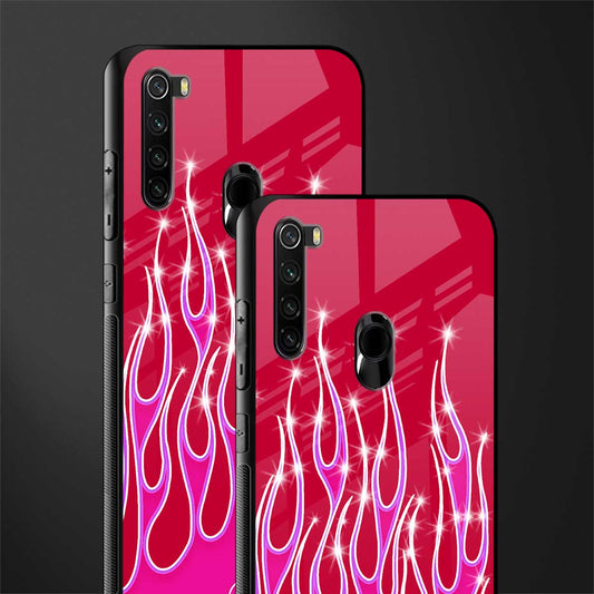 Y2k Magenta Glittery Flames Phone Case for Redmi Note 8 | Glass Case