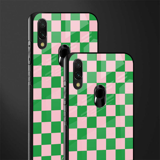Pink & Green Check Pattern Glass Case for Redmi Y3