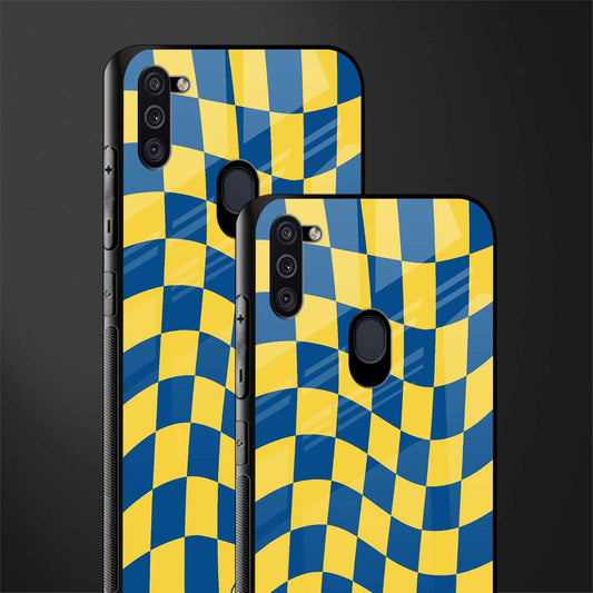Yellow Blue Trippy Check Pattern Phone Case for samsung A11 | Glass Case