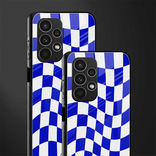 Blue White Trippy Check Pattern Phone Case for Samsung Galaxy A13 4G | Glass Case