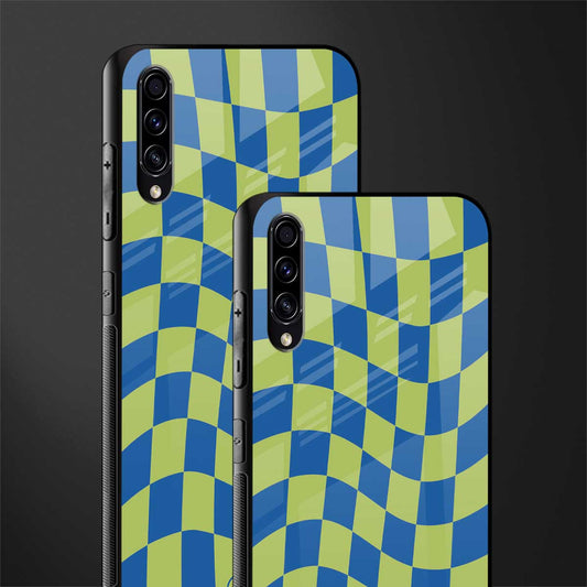 Green Blue Trippy Check Pattern Phone Case for Samsung Galaxy A30s | Glass Case