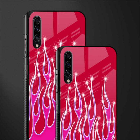 Y2k Magenta Glittery Flames Glass Case for Samsung Galaxy A30s