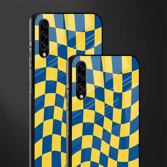Yellow Blue Trippy Check Pattern Glass Case for Samsung Galaxy A30s