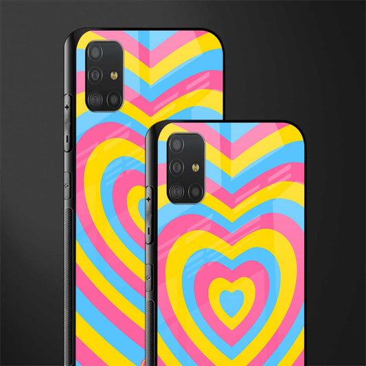 Y2K Yellow Blue Hearts Aesthetic Glass Case for Samsung Galaxy A51