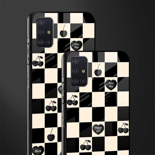 Black Cherries Check Pattern Phone Case for Samsung Galaxy A71 | Glass Case