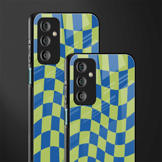 Green Blue Trippy Check Pattern Phone Case for Samsung Galaxy F23 5G | Glass Case