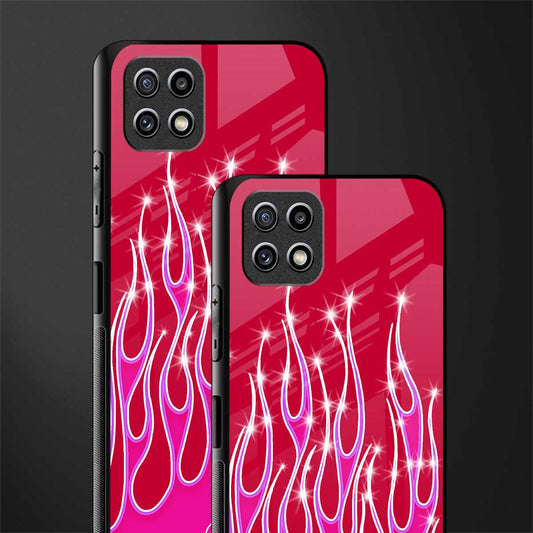 Y2k Magenta Glittery Flames Phone Case for Samsung Galaxy F42 | Glass Case
