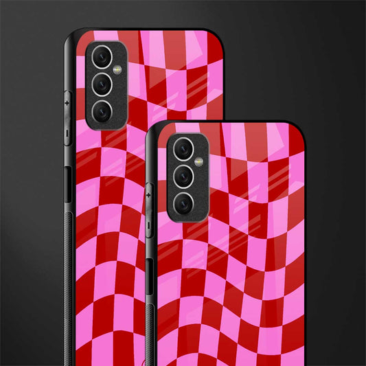Red Pink Trippy Check Pattern Glass Case for Samsung Galaxy M52 5G