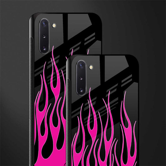 Y2k Black Pink Flames Glass Case for Samsung Galaxy Note 10