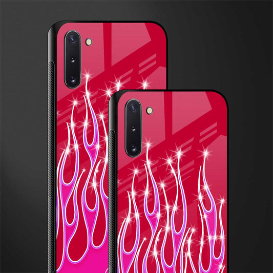 Y2k Magenta Glittery Flames Glass Case for Samsung Galaxy Note 10