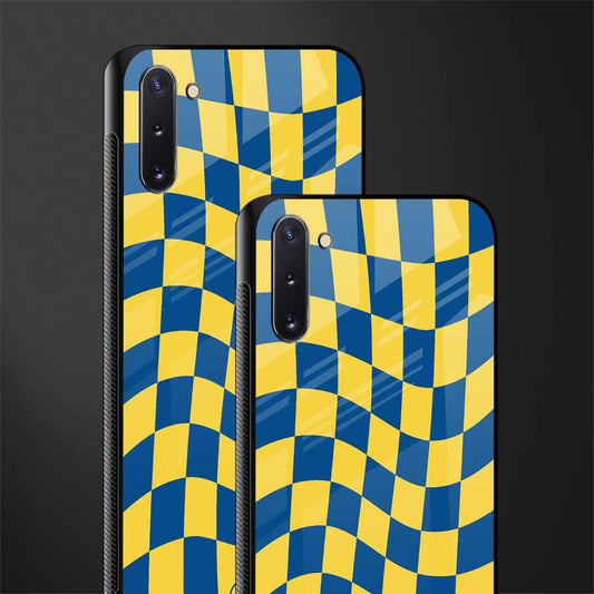 Yellow Blue Trippy Check Pattern Glass Case for Samsung Galaxy Note 10