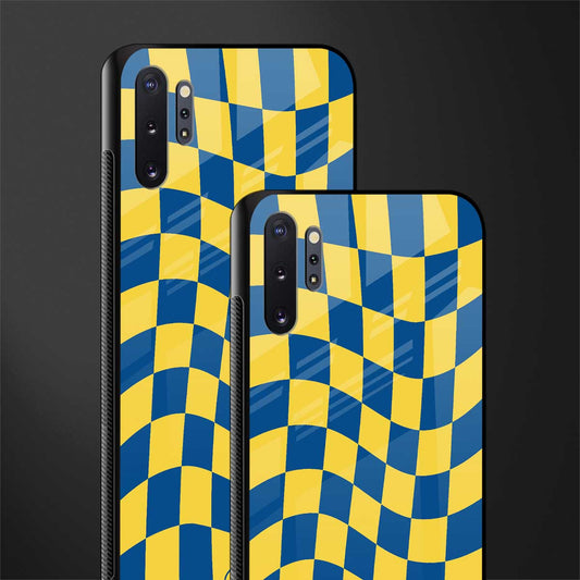 Yellow Blue Trippy Check Pattern Glass Case for Samsung Galaxy Note 10 Plus