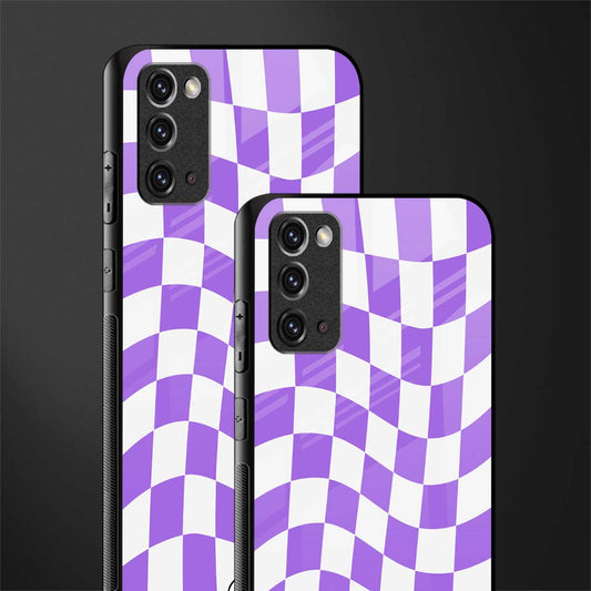 Purple White Trippy Check Pattern Glass Case for Samsung Galaxy Note 20