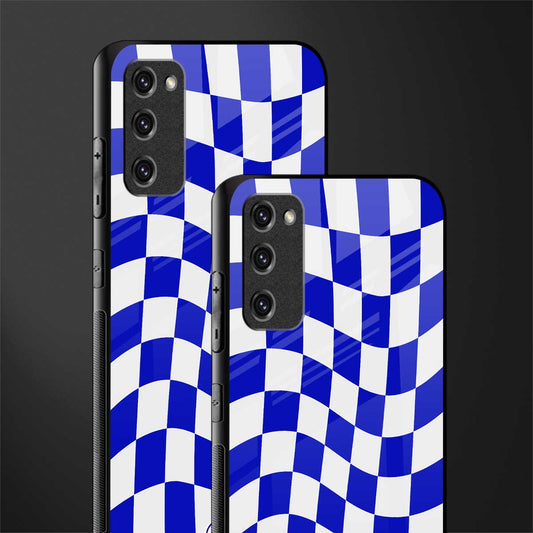Blue White Trippy Check Pattern Phone Case for Samsung Galaxy S20 FE | Glass Case