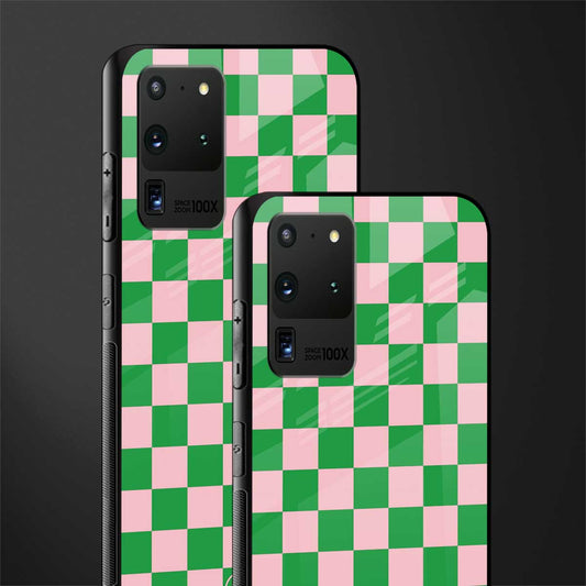 Pink & Green Check Pattern Phone Case for Samsung Galaxy S20 Ultra | Glass Case