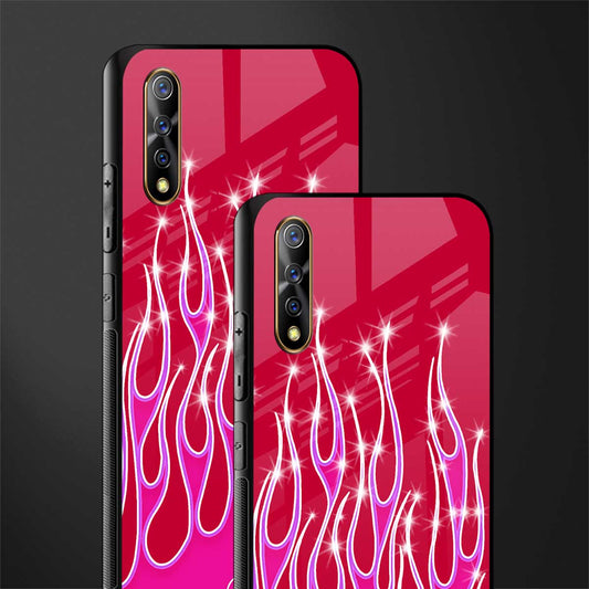 Y2k Magenta Glittery Flames Glass Case for Vivo S1