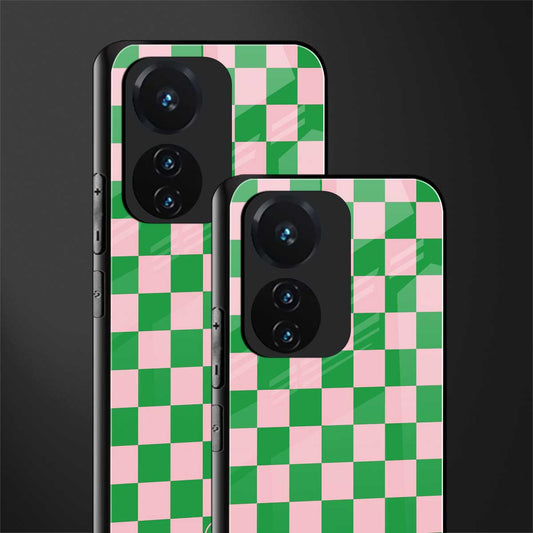 Pink & Green Check Pattern Phone Case for Vivo T1 44W 4G | Glass Case