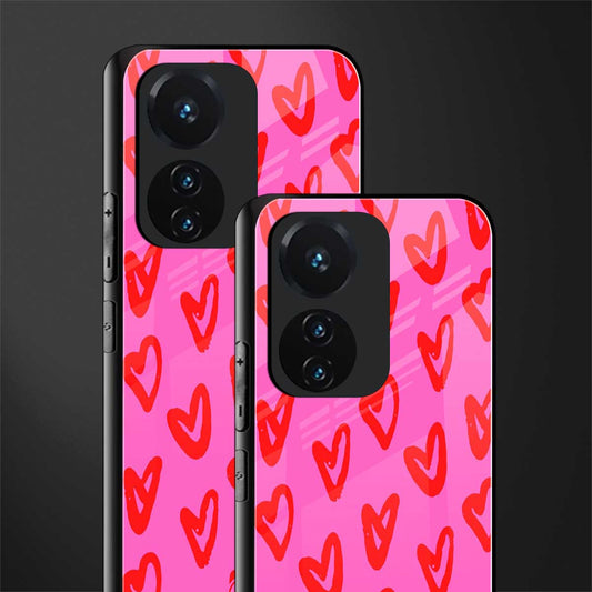 Y2K Brown Hearts Aesthetic Phone Case for Vivo T1 44W 4G | Glass Case