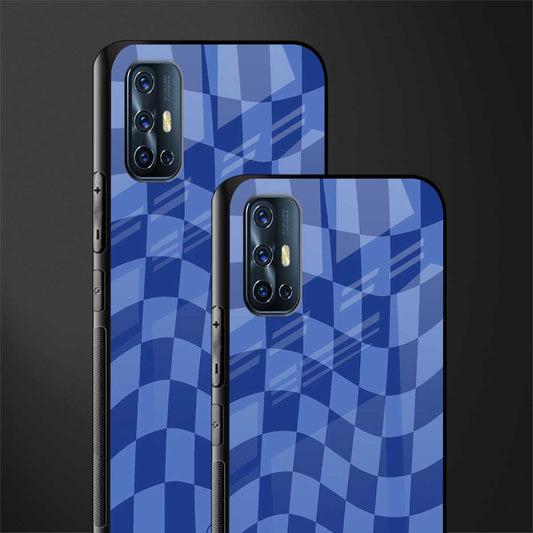 Blue Trippy Check Pattern Phone Case for Vivo V17 | Glass Case