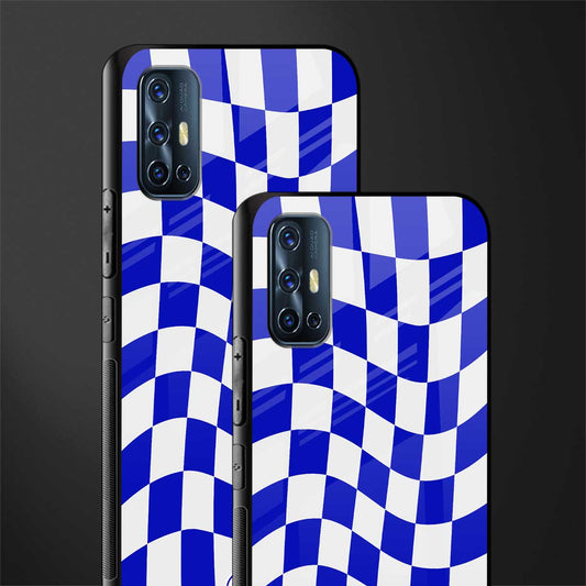 Blue White Trippy Check Pattern Phone Case for Vivo V17 | Glass Case
