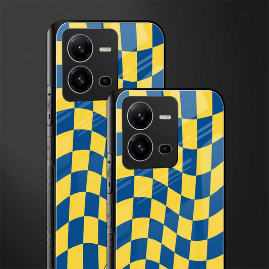 Yellow Blue Trippy Check Pattern Phone Case for Vivo V25 5G | Glass Case