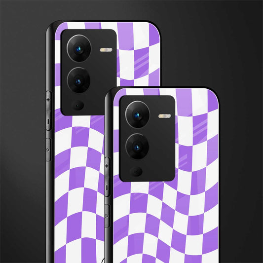 Purple White Trippy Check Pattern Phone Case for Vivo V25 Pro 5G | Glass Case