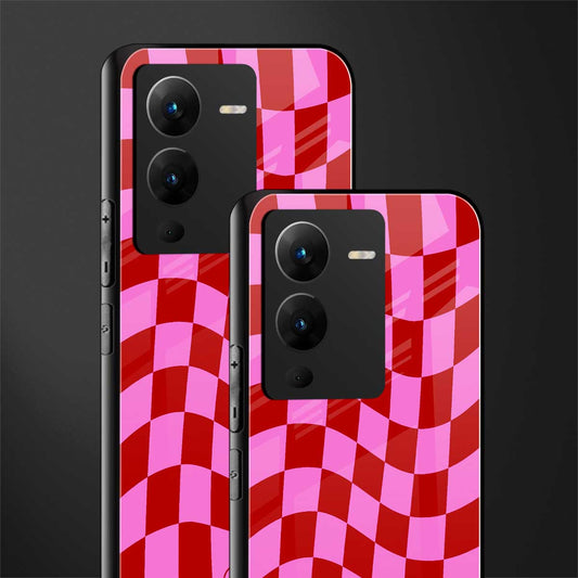 Red Pink Trippy Check Pattern Phone Case for Vivo V25 Pro 5G | Glass Case