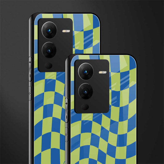 Green Blue Trippy Check Pattern Phone Case for Vivo V25 Pro 5G | Glass Case