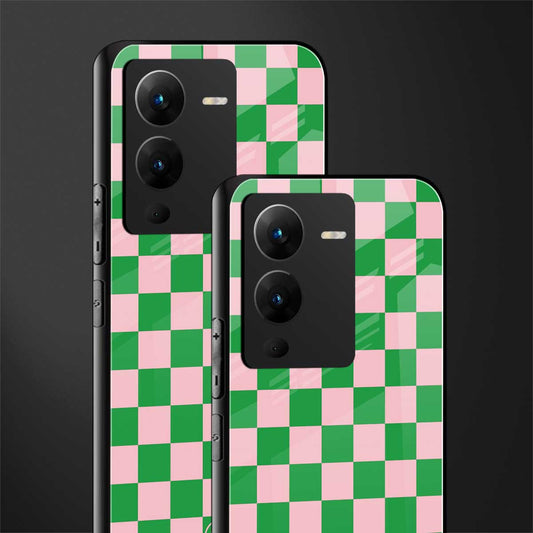 Pink & Green Check Pattern Phone Case for Vivo V25 Pro 5G | Glass Case