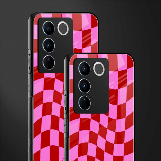 Red Pink Trippy Check Pattern Phone Case for Vivo V27 Pro 5G | Glass Case