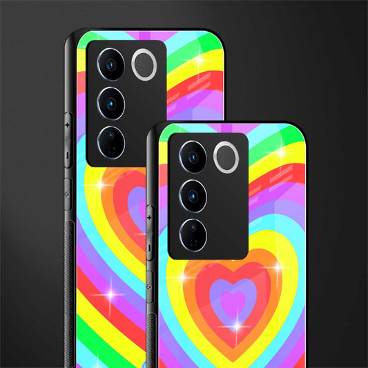 Rainbow Y2K Hearts Aesthetic Phone Case for Vivo V27 Pro 5G | Glass Case